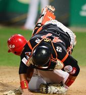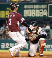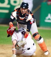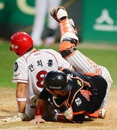 2013.08.27 20: 01안치홍-강민호, '홈 접전 결과는...세이프'