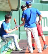 2013.08.30 16: 29정근우-안지만, '경기 전 빵터지는 대화 중~'