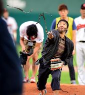 2013.08.31 18: 20홍인규, '시구중에도 김은 먹어야죠'