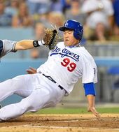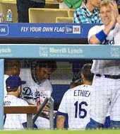 2013.08.31 12: 46다저스 더그아웃, '류현진 슬라이딩에 눈이 번쩍'