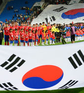2013.09.06 20: 14홍명보호,'대형 태극기 앞에서'