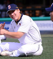 2013.09.07 15: 53양의지,'두산 마스코트 철웅이와 똑같죠?'