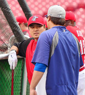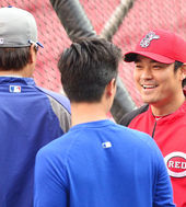 추신수,'류현진과 얘기 나누며 환한 미소'