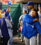 2013.09.09 11: 46유리베-류현진,'하이파이브하고 신나게 가자고!'