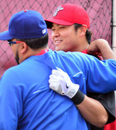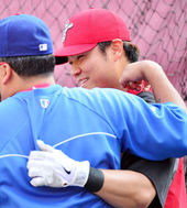 2013.09.10 07: 36추신수,'나바로와 다정하게'