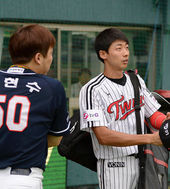 2013.09.11 18: 15김용의,'김현수, 배트 선물 고마워'