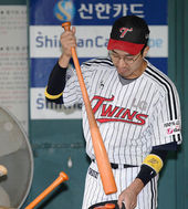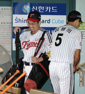 2013.09.11 18: 17우천 연기에 배트 챙기는 정성훈