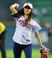 2013.09.12 18: 36시구 나선 손나은, '힘차게 공 던져요~'