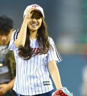 수줍게 미소짓는 손나은, '시구 괜찮았나요~'