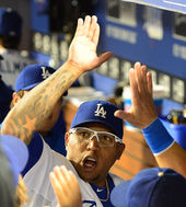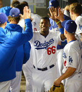 푸이그,'역전! 모두와 기쁨의 하이파이브!'