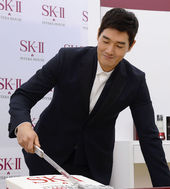 떡 케익 컷팅하는 유지태