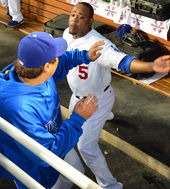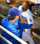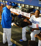 2013.09.14 11: 43류현진,'유리베 헬멧 거꾸로 씌우니 글레디에이터?'
