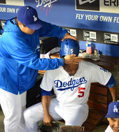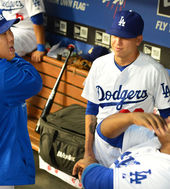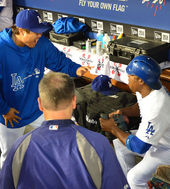 2013.09.14 11: 15류현진,'유리베의 헬멧 거꾸로 씌워주고'