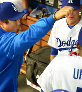 2013.09.14 11: 20류현진,'유리베! 여기에 보호구 숨겨놨었어'