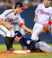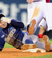 2013.09.15 19: 36박민우,'오지환 무릎에 쿵!'