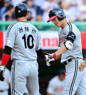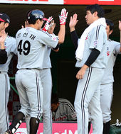 2013.09.18 17: 41문선재,'홈에서 권용관과 멋지게 하이파이브'
