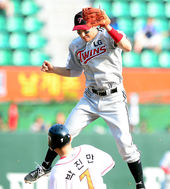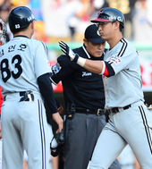 2013.09.19 17: 07우규민 투구에 맞은 박정권,'추석인데 웃어야지'