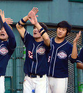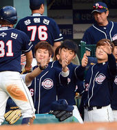 2013.09.20 18: 21홍성흔,'동료들과 즐거운 세레머니'