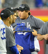 2013.09.20 08: 18류현진,'지구 우승 유니폼, 좀 작은가?'
