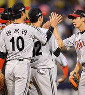 2013.09.22 20: 27서동환-최재훈,'3연승 거두고 싱글벙글'