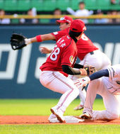 2013.09.22 17: 41김재호,'조금만 더 빨랐으면 세이프였는데'