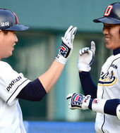 2013.09.22 17: 53허경민,'솔로포 치고 양의지와 즐거운 세레머니'