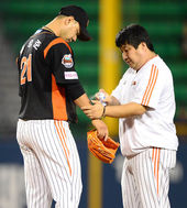 2013.09.23 18: 57송승준,'타구에 맞았어요'