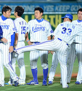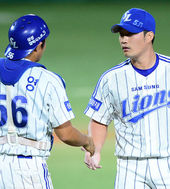 2013.09.23 21: 25박한이,'수훈선수 채태인 향한 질투(?)의 발차기'