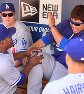 류현진-유리베,'오늘도 즐겁게 등짝 하이파이브!'