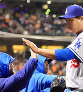 커쇼,'류현진! 14승 축하해!'