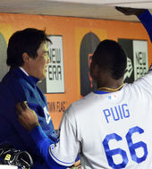 2013.09.25 14: 51푸이그,'류현진! 14승 했으니 고기 쏴야지!'