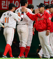 2013.09.26 21: 16SK,'60승 달성 기념 하이파이브!'