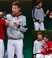 2013.09.27 20: 29먹던 바나나 건넨 윤석민,'기남이형! 제 마음 안 받아주실거에요?'