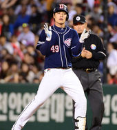 2013.09.30 20: 10박수치는 유희관,'무실점은 계속된다'
