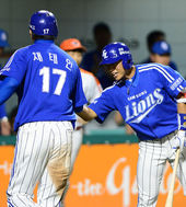 선제득점 채태인,'매직넘버 줄이자'