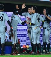 2013.10.01 21: 11이병규, 역전타 날린 이진영 향해 '으쌰으쌰'