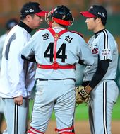 2013.10.01 19: 50유창식,'상훈 선배, 수비 좋아요'