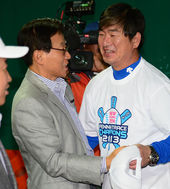 2013.10.02 22: 32김인 사장-류중일 감독,'3년 연속 우승에 함박 웃음'