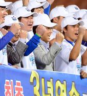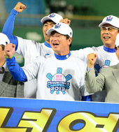 환호하는 류중일 감독,'KS도 우승하겠습니다'