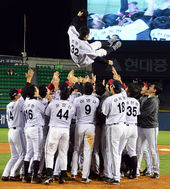 2013.10.05 21: 23헹가래 받는 LG 최동수