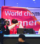 2013.10.05 16: 39롤드컵 우승 SKT,'태극기로 어깨를 감싸고'
