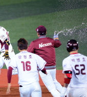 2013.10.08 22: 14이택근,'끝내기 안타,'다들 모여라'