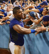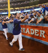 2013.10.08 16: 32다저스타디움을 한바퀴 돌며 팬들과 하이파이브하는 다저스 선수들