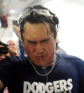 2013.10.08 16: 41샴페인에 푹 젖은 류현진,'이런 기분 처음이야'