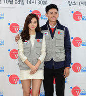 2013.10.08 15: 27김윤혜-이지훈,'월드쉐어 조끼 입고 기념촬영'