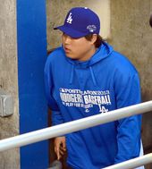 2013.10.08 11: 00더그아웃 들어서는 류현진,'오늘 커쇼가 끝낼겁니다'