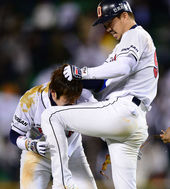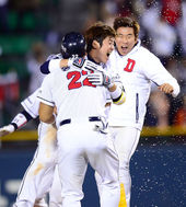 2013.10.11 23: 18오재일-김현수,'연장 끝내기 축하해~'