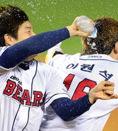 2013.10.11 23: 25민병헌,'원석이 형, 물 받아라!'