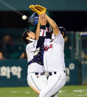 2013.10.11 19: 53노경은-최재훈,'뜬공 잡으려다 아찔한 충돌'
