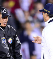 2013.10.11 21: 38투베이스 판정에 항의하는 김진욱 감독